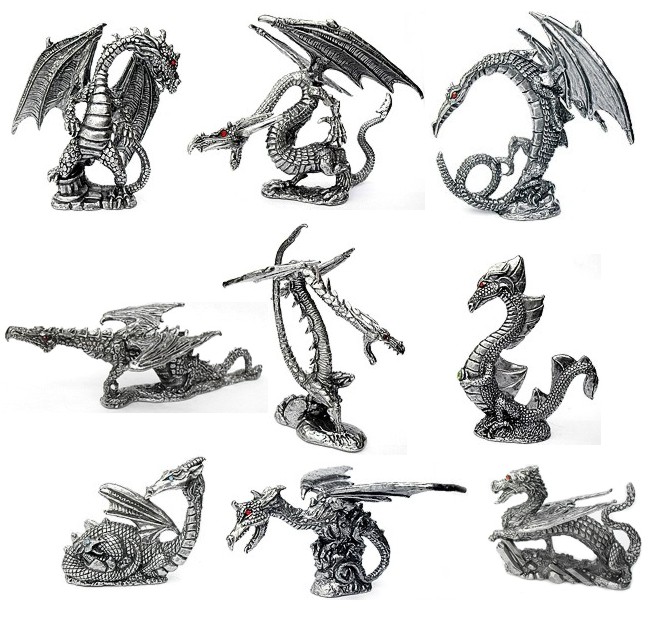 Nosso designer Ian criou uma linha exclusiva e encantadora de Dragões Medievais, dentre eles estão: dragão do fogo, dragão do abismo, dragão da ruína, dragão da pedra, dragão da luz, dragão mãe, serpente de fogo e dragão da floresta. Todas as peças são fundidas em estanho.