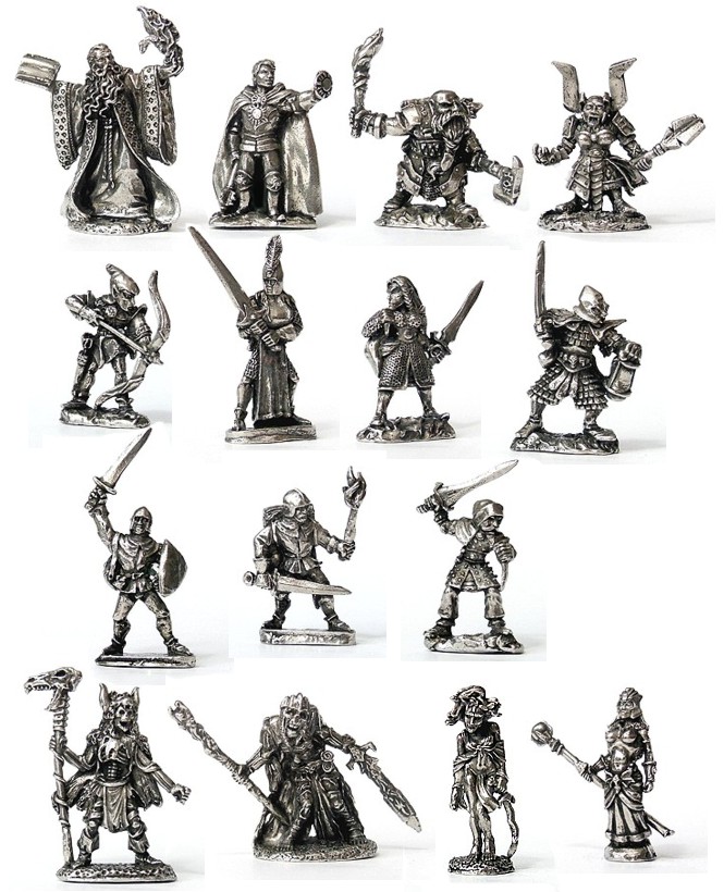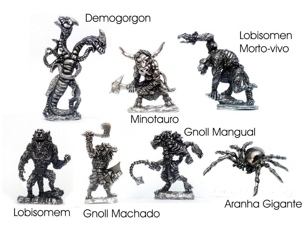 Nossas miniaturas RPG e D&D são fundidas em estanho na escala 28mm ou 54mm, e são compatíveis com qualquer sistema de jogos. O acabamento é em prata velha, mas podem ser pintadas usando tinta acrílica