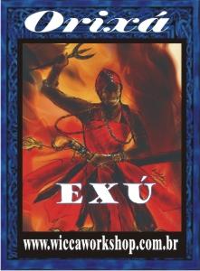 Exú é o senhor dos caminhos, faz com que os ritos sejam cumpridos, principal responsável pela ligação do mundo espiritual ao mundo material. Elemento: fogo Cor: preto e vermelho Símbolos: tridente, bastão