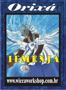 Iemanjá, cujo nome significa “mãe cujos filhos são peixes ” é a rainha das águas. É conhecida também pelos nomes de Janaína, Sereia do Mar e Princesa de Aiucá. Orixá de rios e correntes, é considerada também como responsável pela gestação e procriação.É uma das três divindades da Santíssima Trindade da Umbanda.Devido ao sincretismo, foi associada a N.S. da Conceição e N.S. da Glória, entre outras, e o dia consagrado a ela é 8 de dezembro, se está sincretizada com a primeira santa, ou 15 de agosto, se está associada à segunda santa. Entretanto, na umbanda também é costume homenagear Iemanjá na virada de ano, sobretudo nas cidades à beira mar como Rio de Janeiro e Santos e Niterói.Sua saudação é Odôiá.É representada com saia azul e blusa branca com coroa na cabeça.Sua comida preferida é o ebô de milho branco com mel, arroz, angu, peixes brancos, etc.