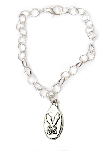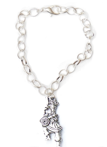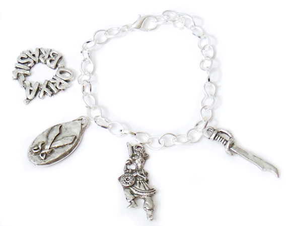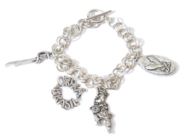 Os Imagens, símbolos e ferramentas montadas nas pulseiras e de estanho polido, e tem em media 25 mm de altura.